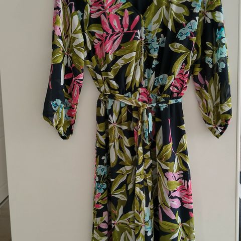 Myydään hyväkuntoinen pitkä mekko. Ostettu vuonna 2025, käytetty vain muutaman kerran. Materiaali on miellyttävä ja hengittävä.