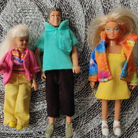 Kuvan nukkeperhe. Isä ja äiti Lundby, lapset käsittääkseni Mattelin nukkeja. Tytön kädet taittuu myös kyynärpäitä ja myös vyötärö kääntyy ympäri. Äidin ja isän jalat taittuu myös polvista.