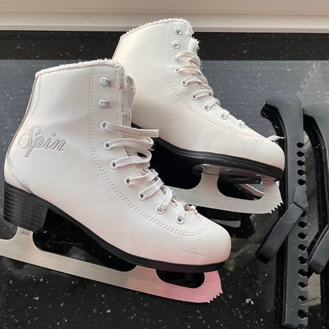 Susan taitoluistimet, koko 37. Valkoiset lasten/nuorten luistimet, joissa korkea varsi ja nauhakiinnitys. Terät soveltuvat yleiseen luisteluun. Päällinen sileää materiaalia, mukana irrotettavat pohjalliset. Sopivat esimerkiksi harrasteluisteluun jäähalleissa tai ulkokentillä.