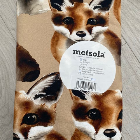 Metsolan kettu-trikookangas. Pituus 100 cm, leveys 174 cm.