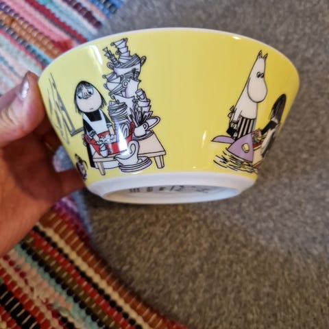 muumikulho nipsu. varmaan ollut alunperin b-laatua kun pari pientä värivirhettä, kuvissa näkyy. ehjä.