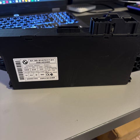 BMW ohjainlaite, väri musta. Sopii BMW-auton sähköjärjestelmään auton mallista ja vuosimallista riippuen. Liittimet sijaitsevat laitteen toisessa päädyssä, kotelo on suorakaiteen muotoinen muovirunko. Tarkemmat tiedot, kuten varaosanumero ja yhteensopivuus, on hyvä varmistaa laitteen tarrasta tai auton valmistenumeron perusteella.