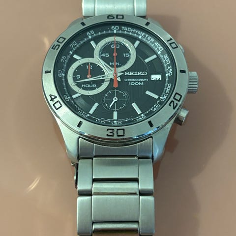 Seiko miesten rannekello. Kellossa on metalliranneke ja pyöreä kellotaulu. Taulun väri on tumma ja siinä on tunti- ja minuuttimerkinnät sekä päivämääränäyttö. Rannekello sopii arkikäyttöön ja siistimpään pukeutumiseen. Automaattinen koneisto. Kunto huippu. Jatkopala mukaan.
