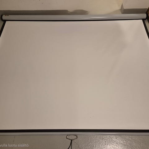 Myydään muuton takia iso manuaalinen projektorin valkokangas. Sopii kotiteatteriin, neuvottelutilaan tai opetuskäyttöön. Kangas rullautuu koteloon, kun ei ole käytössä.