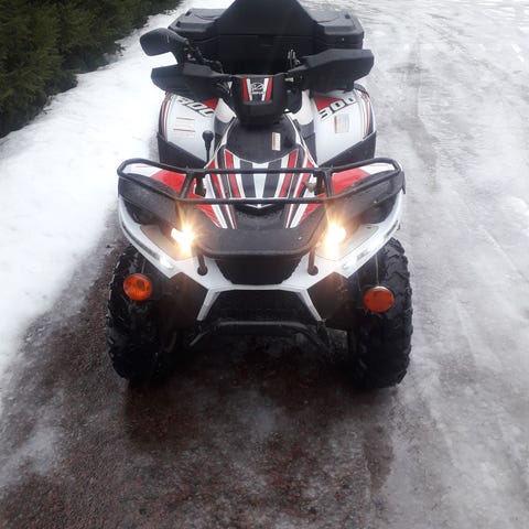 Myydään kaikin puolin toimiva mönkijä. Mönkijä on aina merkkihuollettu ja takuuta on vielä jäljellä 1v ja 9kk. Viimmeisin huolto on tehty lokakuussa ja seuraavaan huoltoon on vielä 8kk tai 1500km. Ollut kevyellä käytöllä vähäisissä lumihommissa ja satunnaisessa koulumatka ajossa. Lisävarusteita on ohjaustehostin, tuulilasi, kädenlämmittimet, takaboxi, peräkoukku ja pistoke, finmanin v-aura+työrunko+kiinnikkeet, ylläpito laturi ja kesärenkaat erikoisvanteilla, joista kuvia saatavilla. Mukaan myös alkuperäinen apukuljettajan selkänoja. Takajarru palat kannattaa vaihtaa seuraavassa huollossa. Maastokuvioiset renkaat ovat vielä hyvässä kunnossa, koska kesät ajettu toisilla renkailla. Kaikin puolin ehjä ja toimiva mönkijä.