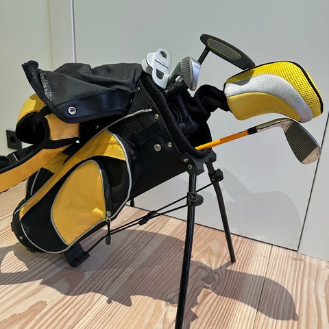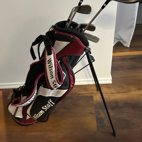 Wilson junioreiden golfmailasetti ja bägi. Settiin kuuluu useita rautoja (numeroituina mm. 3–9 sekä P ja S) sekä 3 puumailaa, joissa eri loft-kulmat sekä putteri. Mailojen lapaosat ovat metallia ja varsissa on kumigripit. Mukana tulee Wilsonin golfbägi, jossa on useita taskuja ja kantohihnat mailojen kuljettamista ja säilytystä varten. Soveltuu aloittelijalle ja harjoitteluun.