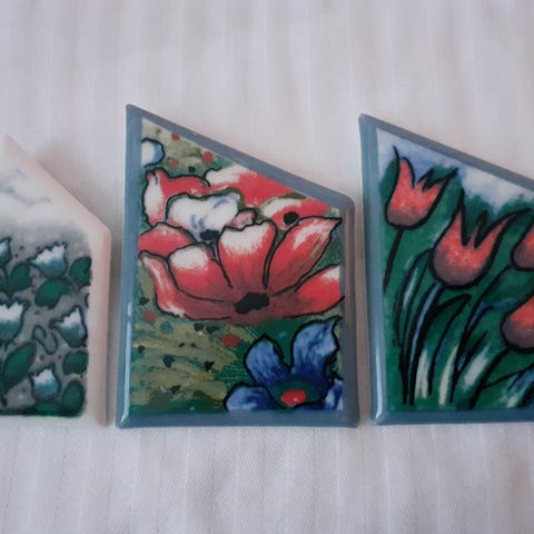 Säihkyen loistaen. Heljä Liukko-Sundströmin suunnittelema Arabian valmistama rintakoru 1990-luvulta. Koko 6.2 × 4.5 cm.