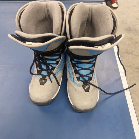 Boardwalk Boy-Cot lumilautakengät. Nauhallinen malli, jossa tukeva varsi ja pehmustettu sisäosa. Päävärinä tummansininen, lisäksi vaaleita ja harmaita yksityiskohtia. Pohjassa kuviointi pidon parantamiseksi. Soveltuvat lumilautailuun ja talvikäyttöön.
