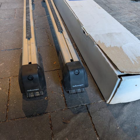 Volkswagen Tiguan alkuperäiset Volkswagenin omat taakkatelineet/kattotelineet. Sopii vm. 2016 eteenpäin kattokaiteelliseen malliin. Itsellä ollut vm. 22 Tiguanissa. Jämerää tekoa ja helppo kiinnitys. Osanumero 5QF.071.151. Kahdet avaimet.