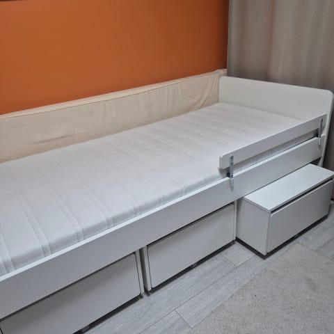IKEA SLÄKT sänky + lisävuode + 2 laatikkoa + patjat