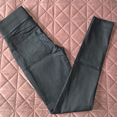 Ostin käytettynä, mutta en käyttänytkään kuin kerran pari. Eivät oikein sovi itselleni. Koko S, mutta kangas on tosi joustavaa ja mielestäni enemmänkin kuin M. Itselleni liian isot ja korkeavyötäröiset.