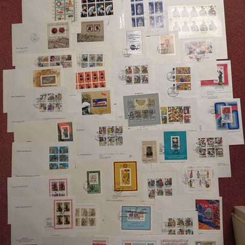 33 complete vuosikertaa FDC:itä vuosilta 1978–2011- pois lukien kaikki FDC:t, joissa on kymmentä kappaletta sisältävä kalvo (kuten E304a)- muut (a) variantit FDC:t ovat saatavilla, kuten lastenmerkkiblokit ja postimerkkikirjojen sisällötKatso kuvat saadaksesi käsityksen.Rekisteröity lähetys