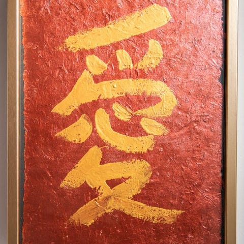 Viet Ha Tran - LOVE (Kanji) — Acrylic on Handmade Mulberry Paper with Gold Lea