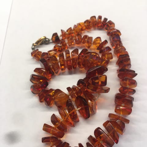 Pitkät pala meripihkahelmet (ei lukkoa), pituus 76 cm (kaksinkerroin).