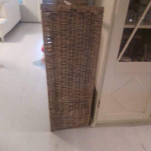 2 kpl kestäviä pärekoreja, iso ja keskikokoinen. Harmaaksi petsattu. Isommasta parin päreen reunasta lohjennut pienet palat, mutta ei vaikuta kestävyyteen. Monia käyttövuosia näillä vielä edessä, mutta muuton alta meiltä nyt pois.