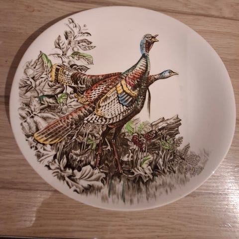 Seinälautanen kullatulla reunuksella. Kuvassa kakasi karhua kalassa