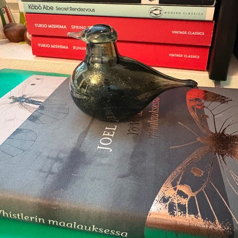 Oiva Toikan Nokialle suunnittelema sinitiainen, jonka pituus on noin 12,5 cm ja korkeus on noin 9,5 cm. Lintu on signeerattu "Oiva Toikka Nuutajärvi Notsjö". Lintu on muuten erinomaisessa kunnossa, mutta pyrstön toisessa nurkassa on pieni osuma, joka näkyy kahdessa viimeisessä kuvassa. Molemmat alkuperäiset tarrat tallella. Nouto tai postitus.