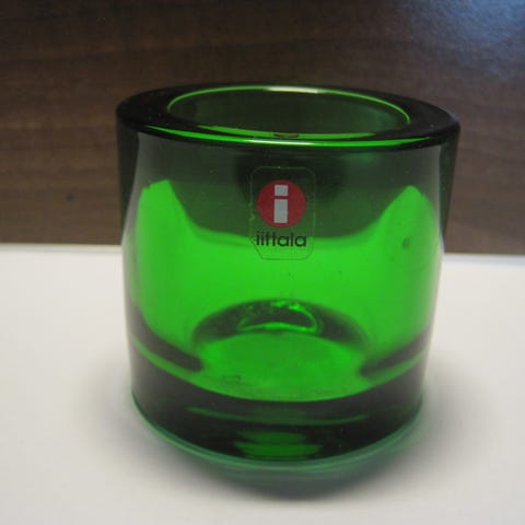 Iittala Marimekko lasinen kivi tuikkukippo. Tummanvihreä. Pohjassa marimekko-kaiverrus ja koko-/mallimerkintä. Soveltuu tuikku- tai pienelle kynttilälle. Koriste-esine kotiin tai kattaukseen.