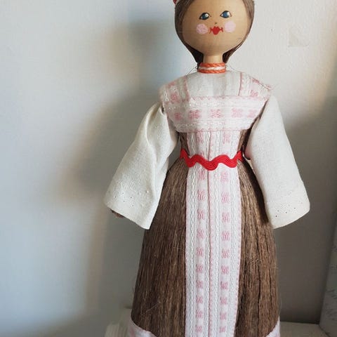 Neuvostoliittolainen kansallispukunukke, muovia. Nukella on perinteistä Moldovalaista kansallisasua muistuttava asu: kirjailtu paita, liivi, siniset housut, punainen vyö ja mustat saappaat ja päähine.