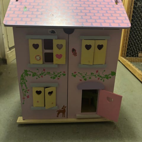 Ikean kankainen, pieneen tilaan kasautuva farmi tai talo nukeille. Sopii monenlaisiin leikkeihin, esim. nukkekotina, pikkueläimille, pikkuautoille, poneille, säilytykseen hyllynä tms. Vikoissa kuvissa näkyy pari pientä kulumaa/reikää, muuten siisti.