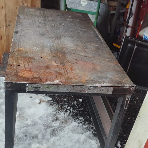 Työpöytä höyläpenkki puristimella. Kevyelle töille sopii. Pöytä ei ole tarpeksi vankka kovaan duunin. 70 cm syvä, 110 cm leveä, 73 cm korkea