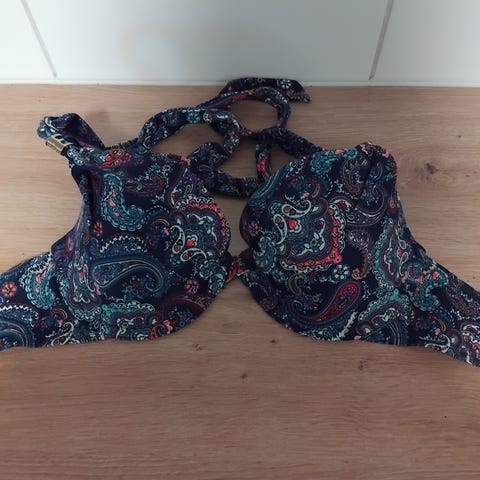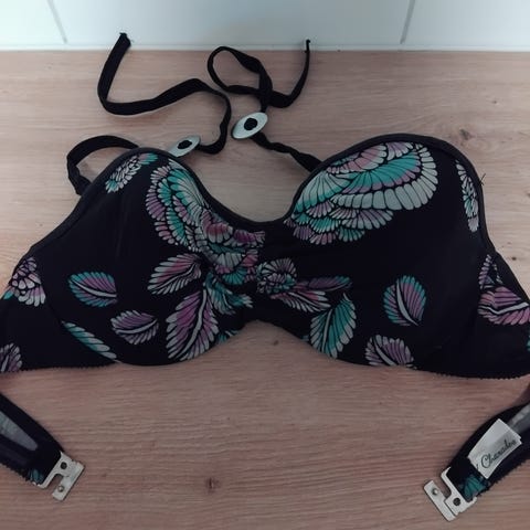 Valkoinen bikinisetti, kokolaput leikattu pois, mutta myyjä arvioi kooksi 80C & L.