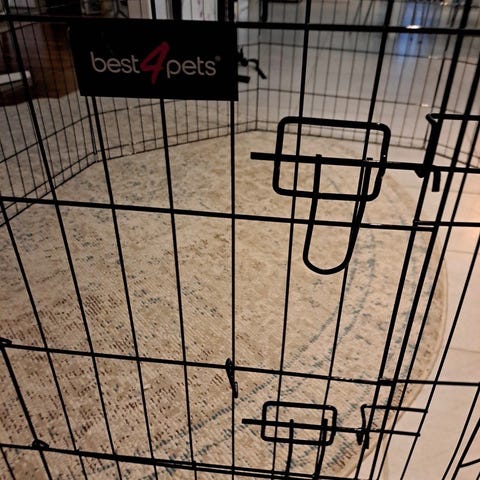 Best 4 Pets pentuaitaus koirille. Aitauksessa on 8 metallipaneelia, joiden koko on 61 x 61 cm. Metallirakenteinen aitaus muodostaa monikulmaisen tilan pennulle tai pienelle koiralle. Aitauksessa on lukittava ovi helpottamaan sisään- ja uloskäyntiä. Soveltuu käytettäväksi sisätiloissa lemmikin rajattuun oleskelu- tai lepotilaan.