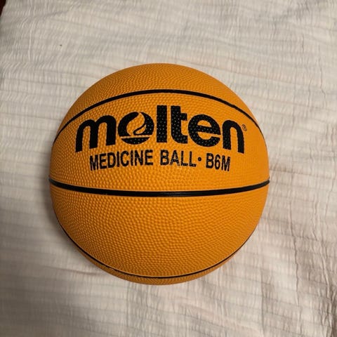 Käytön jälkiä, mutta ehjä ja pomppii kuin tavallinen koripallo.