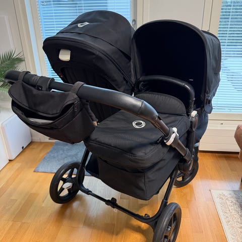 Bugaboo Donkey twin adapteri kaksosrattaisiin. Meillä ollut käytössä Maxi-cosi turvaistuinten kanssa.