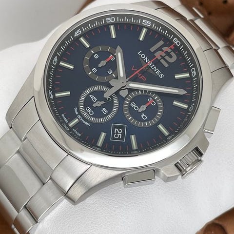 Longines - Conquest VHP - L37164766Kotelo: ruostumaton teräsKellotaulu: hopeanvärinenLiike: Sveitsissä valmistettu kvartsiliike L289.2Halkaisija: 41 mm ilman kruunuaLasi: safiirilasiHihna: alkuperäinen ruostumattomu-teräshihnaRanteen ympärysmitta: n. 20,5 cmTila: Uutta vastaava! Ex-display, käyttämätönTakuu: 1 vuosi "de Horlogemeesters"Toimitetaan alkuperäisessä Longines- laatikossa + alkuperäinen sertifikaatti (allekirjoittamaton) + aitoustodistus "de Horlogemeesters."Kirjaamasi ja vakuutettu toimitus (DHL Express).