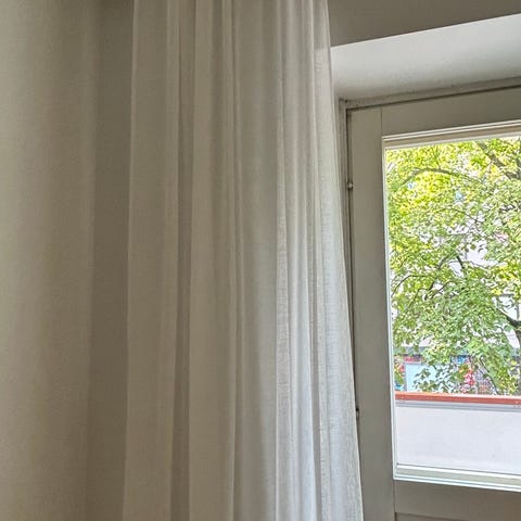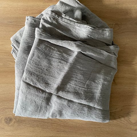 H&M Home verhot, koko 120 x 250 cm. Väri tummanharmaa. Materiaali puuvillaa ja pellavaa. Läpikuultavat. Kunto hyvä.