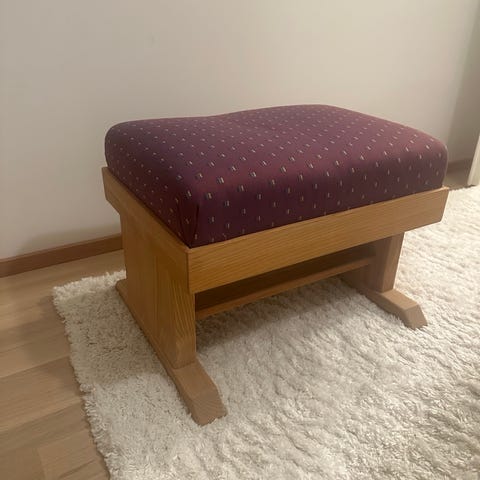 Myytävänä Martelan Noora-mallinen rahi. Rahi on verhoiltu viininpunaisella Kvadratin Steelcut Trio -kankaalla, jonka värikoodi on 665. Jalat on samansävyiseksi petsattua puuta. Rahi on hyvässä kunnossa. Yhdessä jalassa on pieni kauneusvirhe, jossa ilmeisesti liima on tursunnut hieman yli.