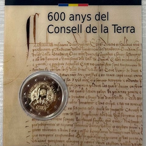 2 € muistomitalit, vuodelta 2016, "Réforme de 1886" ja "Radio et télévision d'Andorre" – BU-suojakoteloissa numeroituina! Painos 86 000 kutakin kolikkoa kohden. Katso kuvat oikean vaikutelman varmistamiseksi.