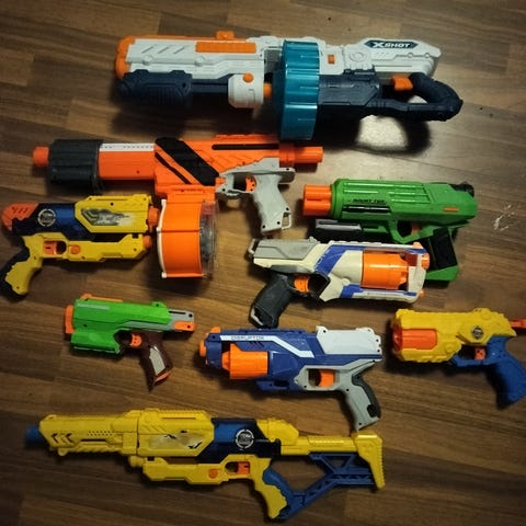 Nerf Mega leikkiasesetti, johon kuuluu useita vaahtomuovinuolia ampuvia leikkiasemalleja sekä tarvikkeita. Setissä on useampi eri kokoinen ja mallinen Nerf-leluase, vaahtomuovinuolia, suojalasit sekä kantovarusteita ja pussukka nuolille tai varusteille. Tarkoitettu leikkikäyttöön vaahtomuovinuolien kanssa sisällä tai ulkona.