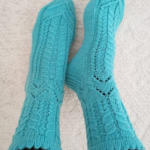 Käsintehdyt villasukat Nalle-langasta. Terän pituus 25-26cm, varsi n.20cm.