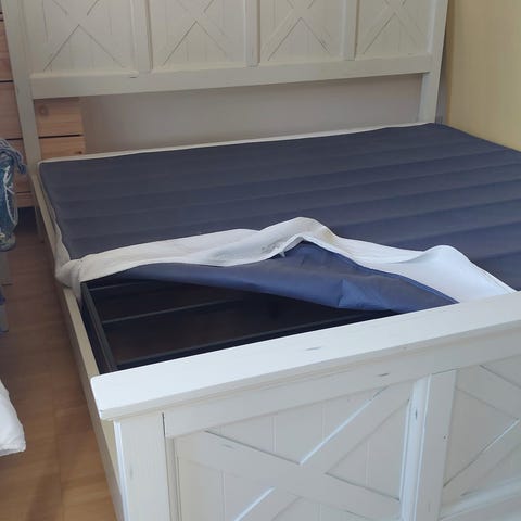 Kaksi erillistä sänkyä, joiden patja ja petauspatja ovat yhtenäiset. Toinen puoli medium- ja toinen hard-kovuudella. Petauspatja on käännettävä, toinen puoli on pehmeämpi ja toinen kovempi, joten kovuutta voi säätää petauspatjaa kääntämällä. Petauspatjan päällinen on pestävä pesulan isossa koneessa (hinta n. 25 euroa), petauspatjan pesetys jää ostajalle.