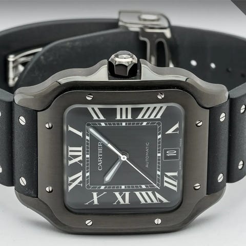 Myyjä ei ole paikalla 12.3.–20.3. Kellojen, jotka on maksettu ennen 12.3, lähetetään samana päivänä. Maksut, jotka vastaanotetaan 12.3 jälkeen, tarkoittavat että kellosi lähetetään 23.3.Tarjolla EI huutokauppahintaa eurooppalaiselta myyjältä, joten ei 21 % maahantuontiveroa, jos olet eurooppalainen ostaja ja täydellisessä setissä, mukaan lukien Cartierin takuuopas:Kello on suurikokoisena ja arvostettuna, täyssolidi 18K punaisen kullan timantein koristeltu Cartier-rannerelo. Malli Santos Dumont, ref. 2788. Sen koon ollessa 30,5 mm x 38,5 mm ja kirkkaiden timanttien kirkkauden ansiosta tämä malli ilmentää Cartier-brändin ajattoman eleganssin. Se tekee vahvan vaikutuksen omistajan ranteessa.Laadukas ja jälkimarkkinat timanttien asettelu on erinomaista.Myyty täydellisessä setissä Cartierin kaksoispaketein, numerosidyt ja päivämäärämerkinnällä varustettu takuutodistus (2019), ohjekirja, asiakirjapankki CD:llä sekä uusi musta Cartierin signeeraama krokodillinahkarannetyyppi, kultapinnoitteinen neutraali taittuva solki. (Ranteet enintään 16 cm)Kello on kuvattu uudella käsintehdyllä mentha-vihreällä JL-krokodillinahkarannekkeella, Cartierin vaaleanpunakulta kuorrutetulla soljella. (Ranteet enintään 19 cm). Tämä menthe-vihreä ranneke sisältyy myös tähän myyntiin.Cartier on täysin huollettu ja kunto on kuten uudella. Sisälaatikon kulut ja tyynyn päällyste ovat menettäneet päällisen. (Katso valokuva)Tätä mallia käyttävät sekä miehet että naiset. Kaksi valokuvaa näyttää Cartierin 16,5 cm naisranteella ja 18 cm miehen ranteella.Solidi 18K keltakultainen kotelo mittoineen on 30,5 mm x 38,5 mm, pois lukien Cartierin kruunu sinisellä cabochon-kivellä. Kotelo sisältää yhteensä 58 briljantin leikkausta timanttia: 41 x 0,05 ct, yhteensä 2,05 ct ja 18 pienempää timanttia, yhteensä 0,34 ct. Yhteensä timanttien paino 2,39 ct. Cartierin signeerattu hopea-kellotaulu maalatuilla mustilla numeroin ja "railoroodin minuuttilukitus". Salainen Cartier-allekirjoitus klo 10. Katso yksityiskohtaiset kuvat. Sinikellon kädet. Takakannessa Cartierin merkki, referenssinumero ja ainutlaatuinen kellonumero, jotka vastaavat Cartierin takuutiedostoa. Myös 18K kullan leima. Cartierin signeeraama quartz-liike kal 690, täysin huollettu.Kello pakataan hyvin ja lähetetään vakuutettuna seurannalla DHL Expressillä, joten se on luonasi 2–3 päivässä maksun jälkeen Catawikille.HUOM: Ei tullimaksuja EU:n sisäisiltä ostajilta. Ostajat EU:n ulkopuolelta maksavat tullimaksut.HUOM: CITES-sopimuksen mukaisesti emme saa viedä krokodrirenkaita EU:n ulkopuolelle. Tässä tapauksessa emme voi toimittaa renkaita kellon mukana. Lähetämme normaalin ruskean nahkarannen.Ole hyvä ja jätä positiivinen palaute, kun olet täysin tyytyväinen ostokseesi ja palveluumme.Jos jostain syystä et ole tyytyväinen ostokseesi, pyydämme ystävällisesti olemaan antamatta negatiivista palautetta, vaan ottamaan meihin yhteyttä Catawiki-sähköpostijärjestelmän kautta, jotta voimme auttaa.