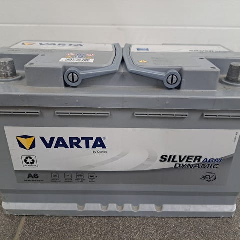 Varta agm 95Ah 850A. 353x175x190mm. Oli päässyt purkautumaan, mutta laturin elvytys-toiminnolla ladattu ja näyttäisi jännite pysyvän hyvin 12,6V