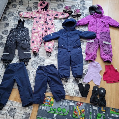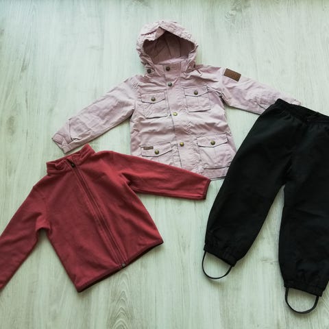 Pakettina tarjolle välikauden vaatteet seuraavalle 104(110) kokoiselle, olleet meillä samaan aikaan käytössä. Kunto vaihtelee erinomaisesta tyydyttävään. Sopii moneen säähän/ parempaan menoon / pihaleikkeihin.