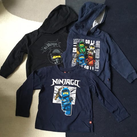 Myydään viisi paitaa koot 110/116. Neljä paidoista on pitkähihaisia ja yksi on ohut huppari.