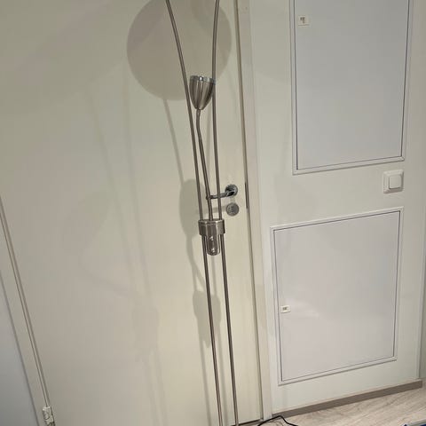 Annetaan Ikean lattiavalaisin, jossa yleisvalo sekä kohdevalo lukemista varten. Jalassa pari pientä lommoa, jotka eivät vaikuta toimivuuteen tms.
