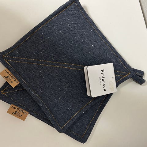 Hämähäkkikuosiset patalaput ja essu, Halloween-henkeen. Anno-merkkiset, molemmat käyttämättömät, laput kiinni. Molemmat 100 % puuvillaa. Patalaput 2 kpl 21 x 21 cm, molemmin puolin samanlaiset. Essu 80x90 cm. Iso tasku edessä. Niskan taakse tuleva nauhan pituus on säädettävissä soljella. Myydään yhteishintaan.