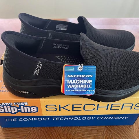 Vain muutaman kerran kokeiltu ja liian isoiksi todettu . Skechersin vapaa-ajan kengät ja todella mukavat jalassa . Irrotettava memory foam pohjallinen . Arch fit malli suunniteltu antamaan tukea holvikaarelle ja vakautta koko päiväksi . Joustava ja isku vaimentava välipohja. Kaunis väritys harmaa ja vaaleanpunainen .