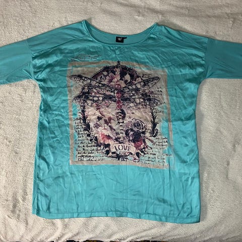 Myydään Polan uusi kesäinen hedelmäkuvioinen pusero jossa ribbikaulus, joten voi pitää olkapäät paljaina. Hihansuissa kuminauhat. Koko XL, 48/50.
