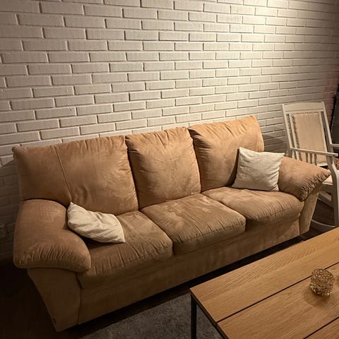 Myydään laadukas, kolmen istuttava, maastonvihreä sohva. Hyvässä kunnossa. Ostettu n. 5v sitten Vekestä. Pestävät tyynyjen päälliset.
