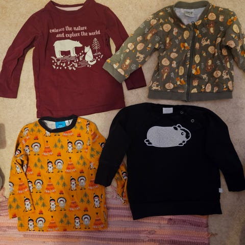 Hyväkuntoiset paidat, kokoa 86. Eri merkkejä. Hajusteeton ja eläimetön koti.