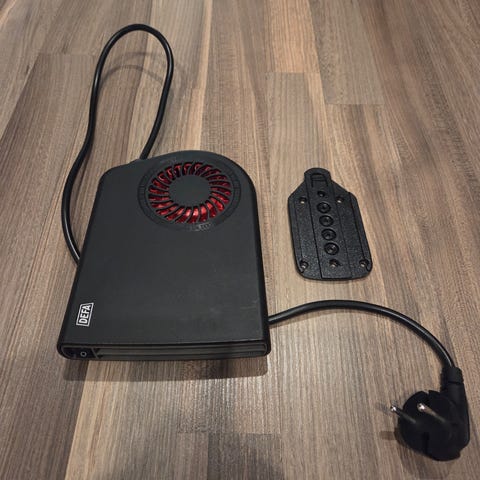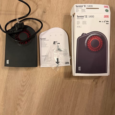 Myynnissä erittäin hyvässä kunnossa oleva, vähän käytetty Defa Termini II 1400 sisätilanlämmitin 0/1400 W "superslim“, sisätilanlämmittimen kiinnityslevy ja Shuko-adapteri.