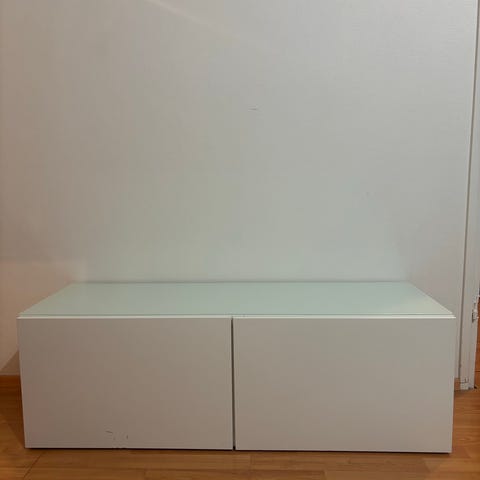 Myydään valkoinen Ikean Bestå sarjan tv-taso.