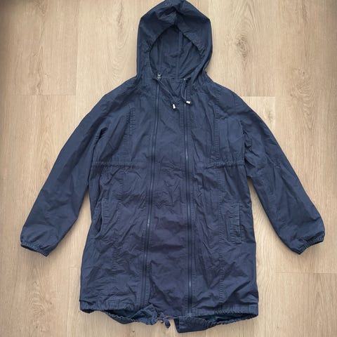 Hollister The All-Weather Collection -takki, koko M. Tummansininen kuoritakki, jossa on lämmin, pehmeä fleece-/tekoturkisvuori. Edessä vetoketju ja vetoketjullinen rintatasku, hihassa Hollister-merkki. Takissa on huppu ja pidempi helma takana. Soveltuu viileämpiin säihin arki- ja ulkoilukäyttöön.