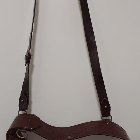 Myydään ruskeanahkainen SA-päällystövyö. Vyön pituus 95 cm. Komentohihnan (rähinäremmin) pituus 108 cm. Käyttämätön, ehjä, uuden veroinen, ei lisättyjä reikiä. Leimat 95 ja tornilogo.